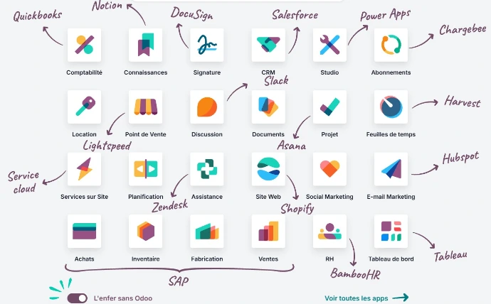 L'intégration d'Odoo permet aux entreprises de centraliser et d'optimiser leurs processus de gestion grâce à une suite d'applications.